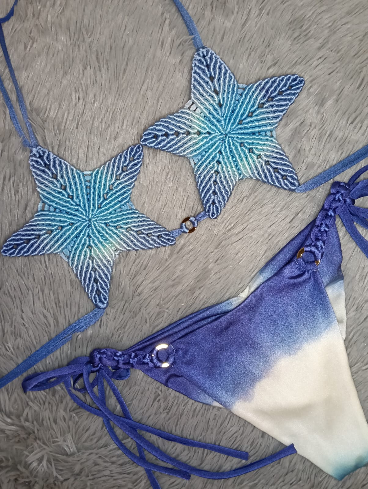 Vestido de baño en macramé tejido completamente a mano, inspirado en la serenidad del encuentro entre el mar y la arena. Su diseño equilibra suavidad y estructura para ofrecer un ajuste cómodo que realza la silueta de forma natural. Cada detalle refleja un proceso artesanal cuidadoso, pensado para acompañarte con elegancia y libertad.